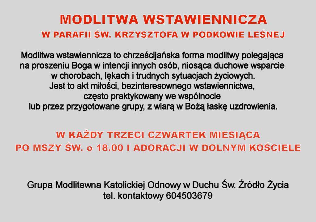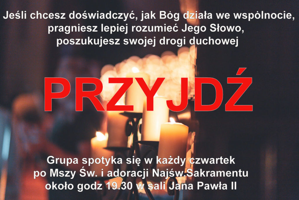 „DUCHU ŻYWEGO BOGA ZSTĄP I PRZENIKAJ MNIE, ABYM SPOTKAŁ SIĘ Z JEZUSEM CHRYSTUSEM OBECNYM W SŁOWIE. ZABIERZ ROZPROSZENIA, OTWÓRZ NA SŁOWO. POZWÓL USŁYSZEĆ, TO CO TY CHCESZ POWIEDZIEĆ.”
